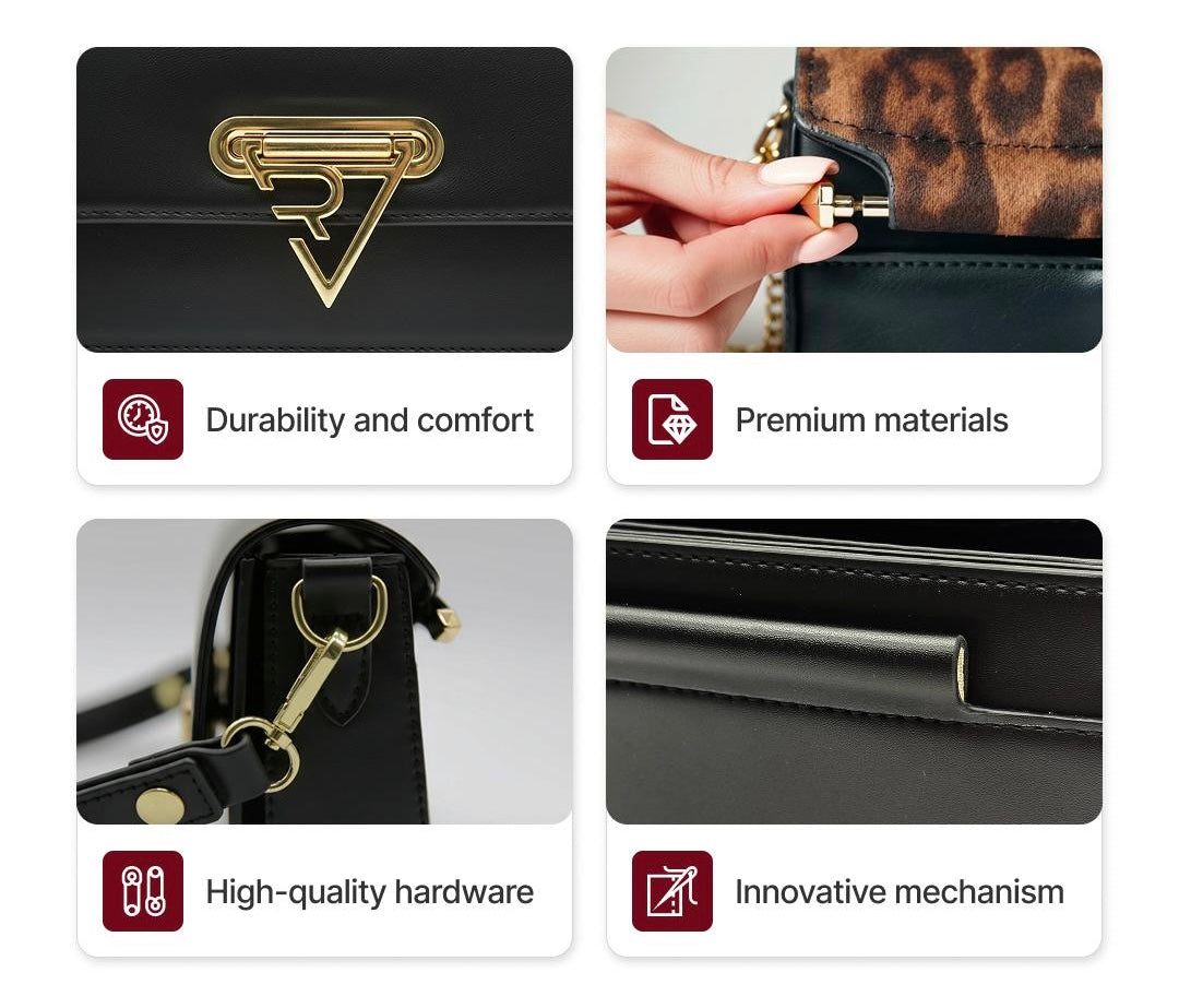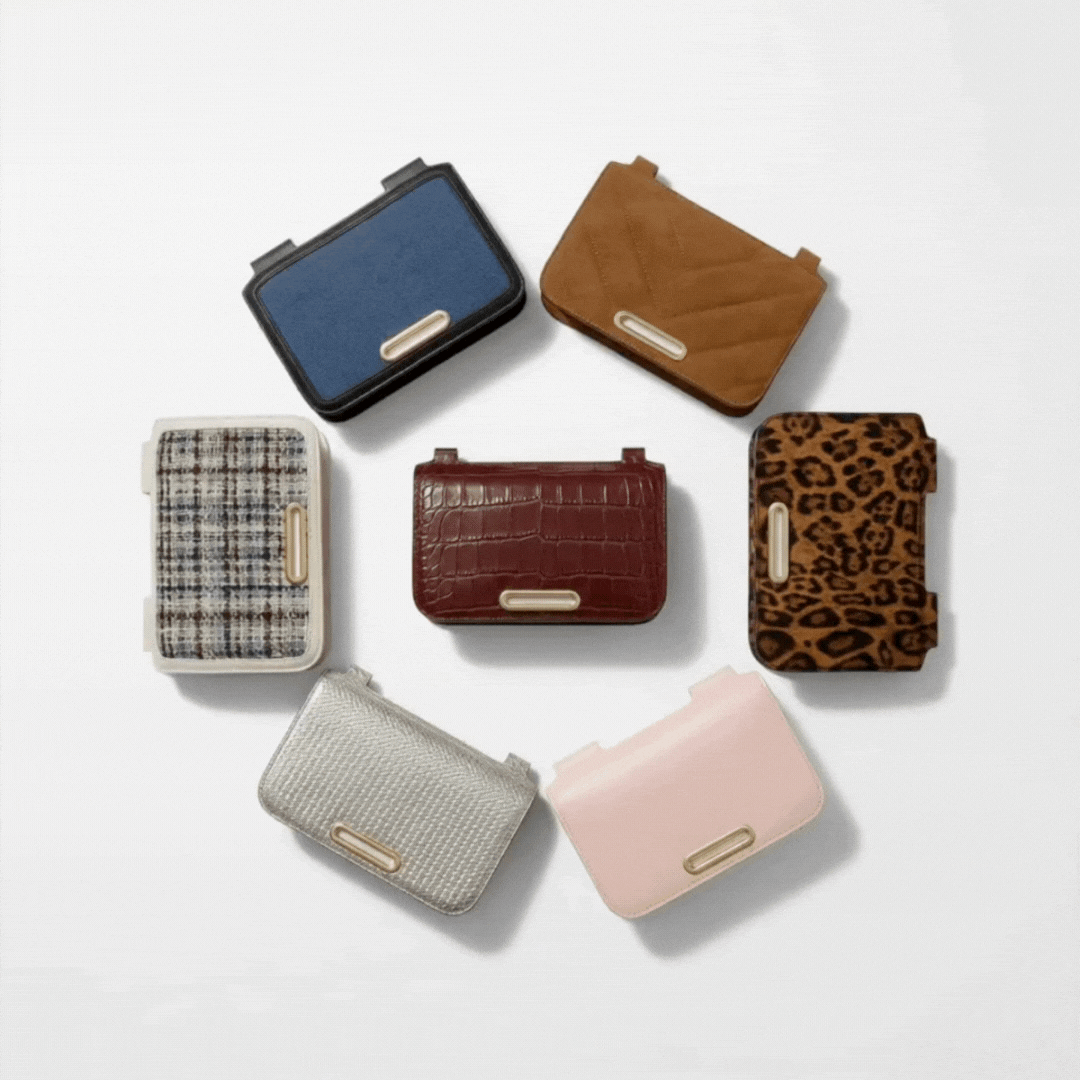 Each flap attaches magnetically in seconds. Go from classic nude to bold croc, from minimal day to glamorous night.