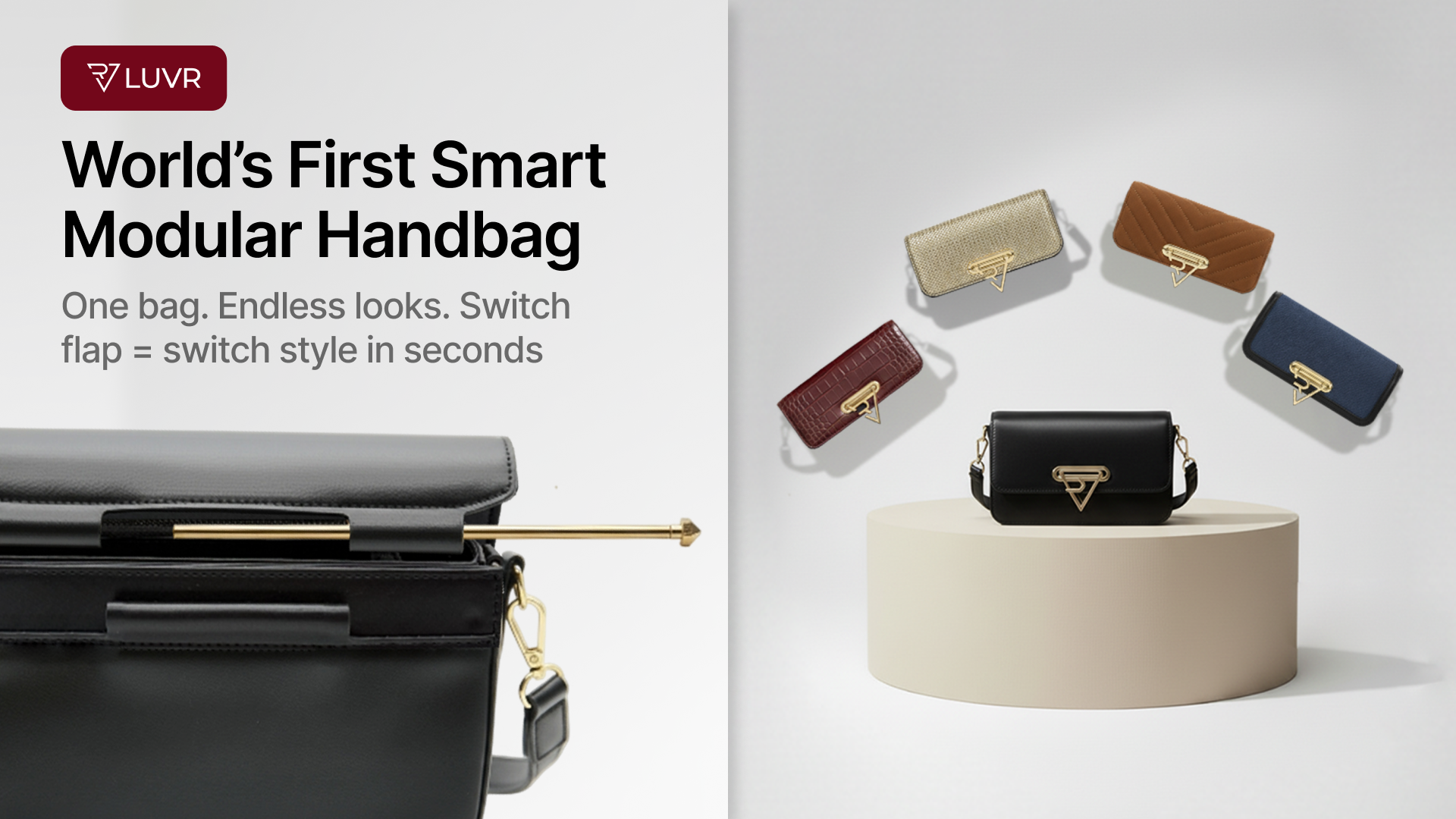 One LUVR base with interchangeable flaps keeps your closet minimal, your suitcase light, and your style unlimited.