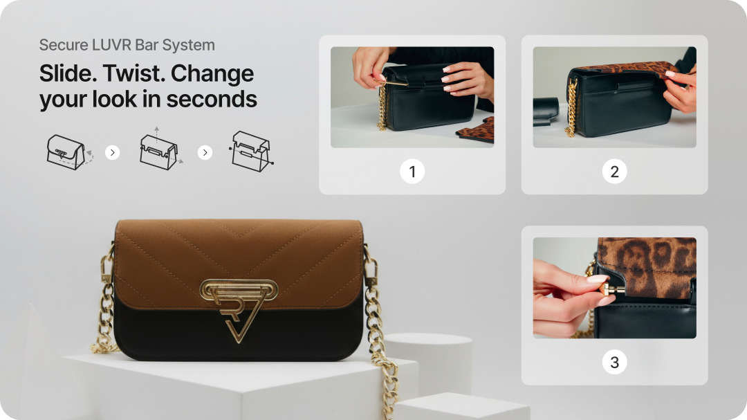 Collect different flaps to suit your outfit, mood, or occasion. Every flap is fully compatible across all LUVR bases.